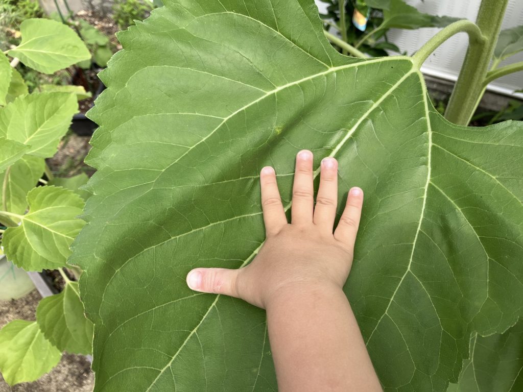 2歳児が育てたひまわりもとっても大きく成長しました。