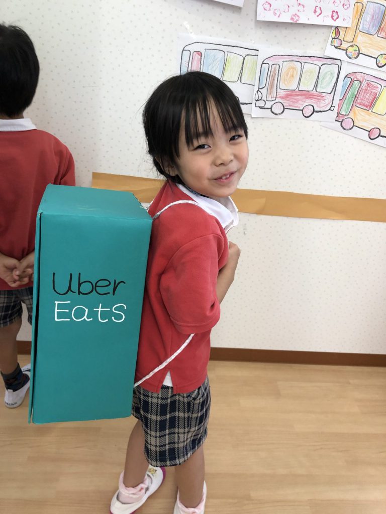 ちょうどこの日の数日前園長もこのリュックを使ってデリバリーごっこに参加していました。