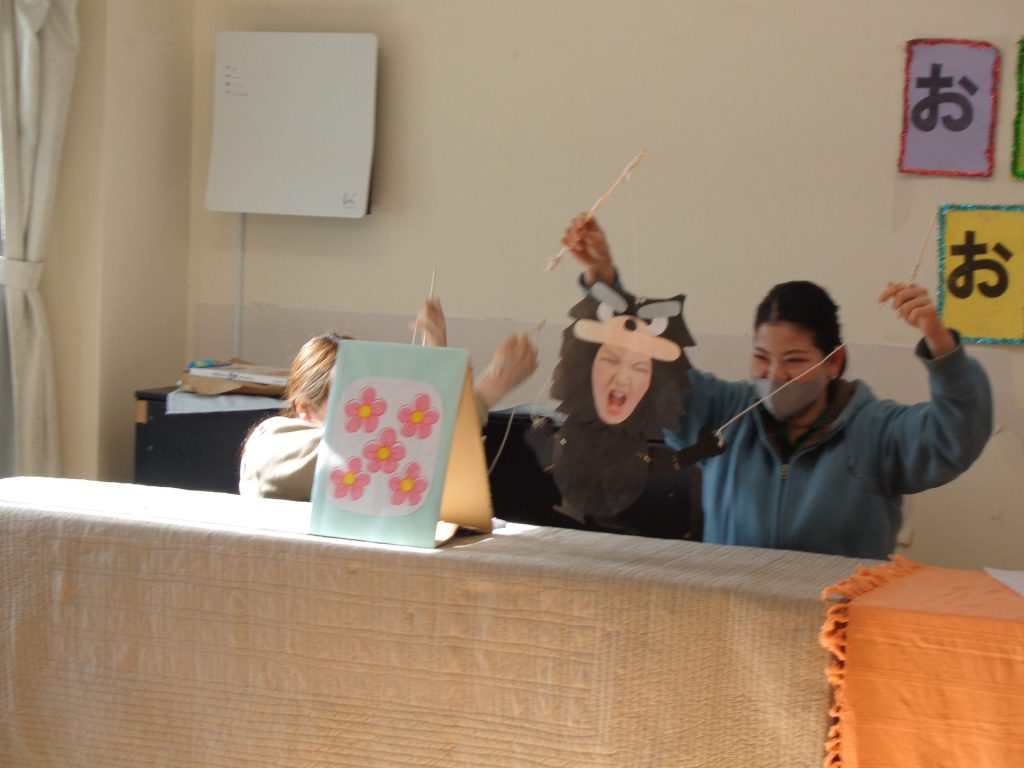 子どもたちは聞いたことのある物語と知っている顔が付いている人形に大盛り上がりでした。