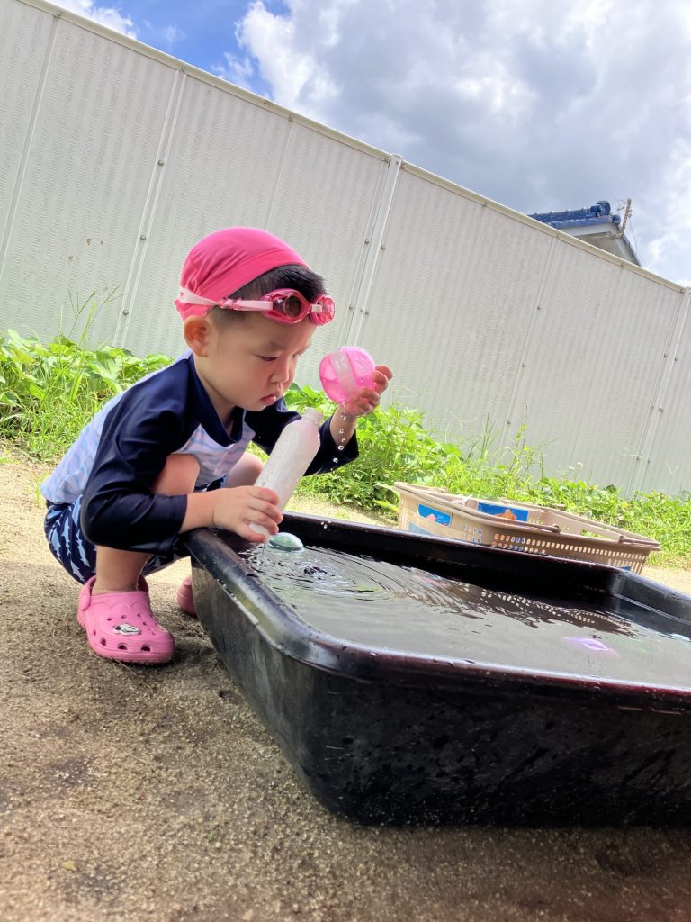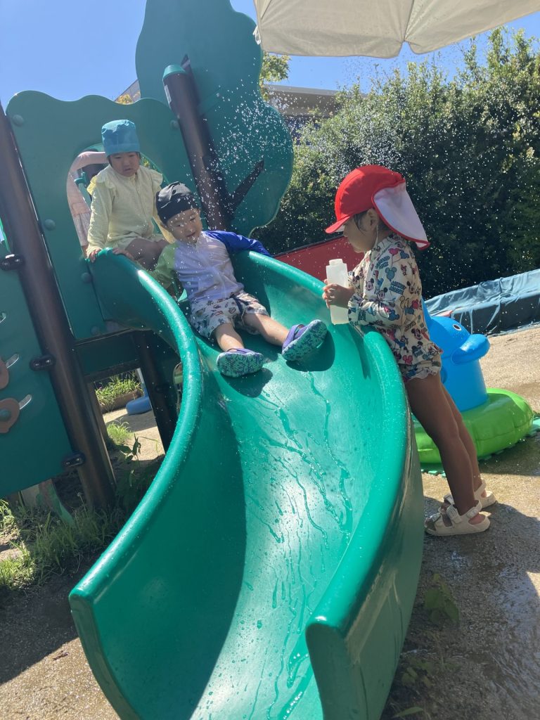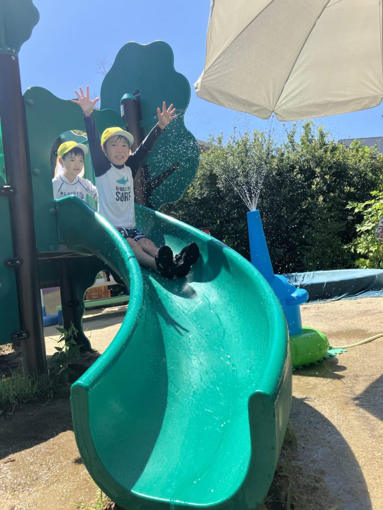 ウォータースライダーも解禁してみんなは大喜びで自分たちなりの水との関わりを楽しんでいます。