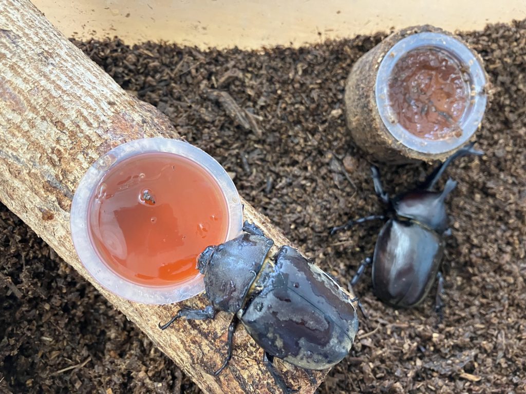 オスしかいなかったカブトムシのコミュニティですがメスが仲間入りしたことで赤ちゃんが期待されるところです。