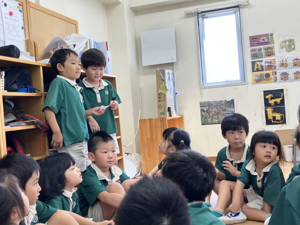 サークルタイムでは毎日暑さについて話題にあがります。また日々「今日は〇〇の日」と毎日の記念日を知らせてくれる5歳の男の子。