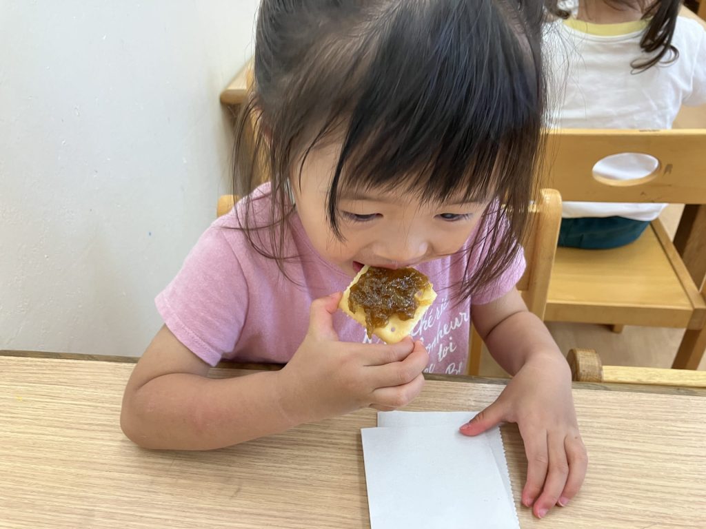 また最後の梅ジャムをクラッカーに乗せて味わったり、職員が姉妹園の見学で学んだスライムづくりを幼児クラスが実践してみたりと様々な活動を楽しんでいます。