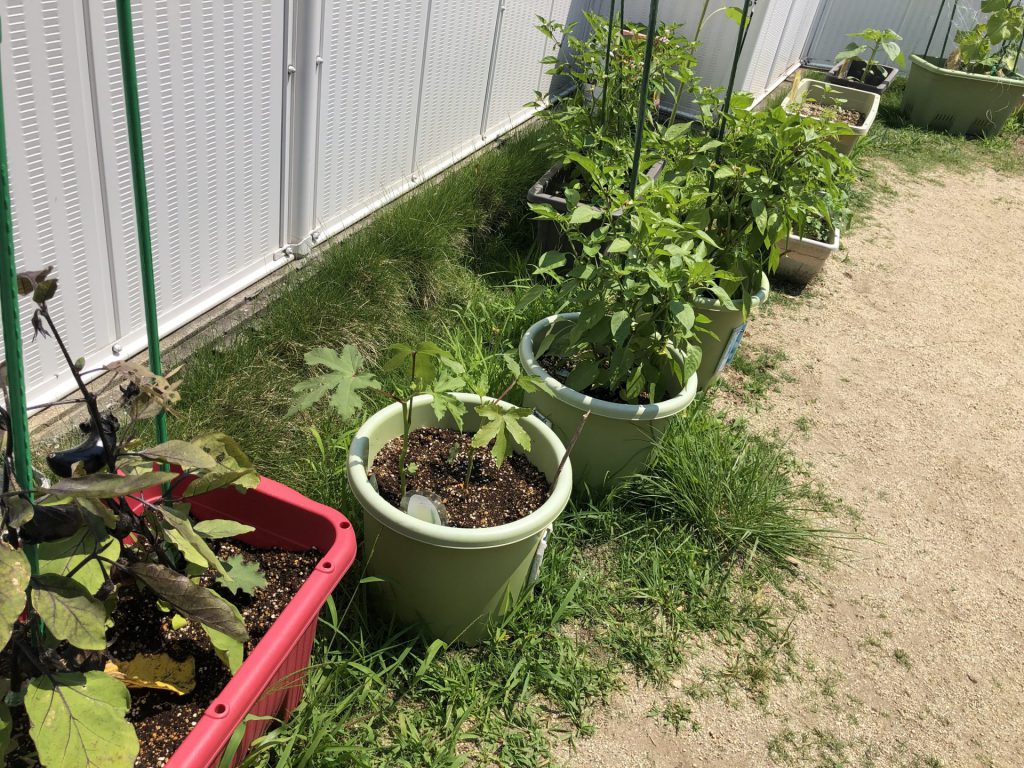 子どもたちは園庭に出るたびに植物や作物の育ちを気にするようになりました。そういった姿が乳児にも受け継がれてどんどん栽培への興味が出来てくるようになったらいいなと感じました。