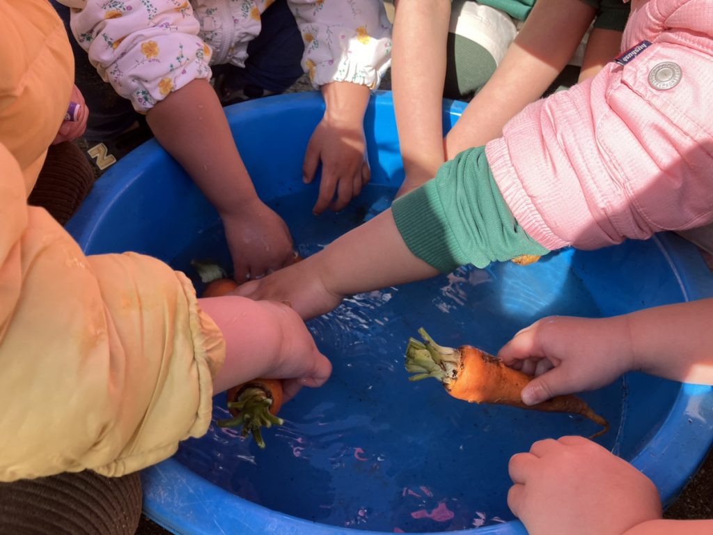 最後に乳児クラスの子どもたちがきれいに水洗いしてくれました🥕