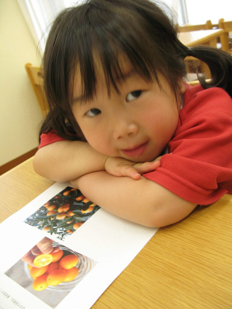 収穫したときある子が「金柑って金の文字が入っているのになんでオレンジなの??」と保育者に聞きました。