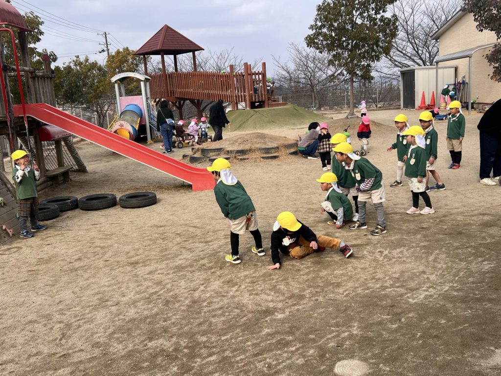 「だるまさんが転んだ!」のかけ声が響く園庭。