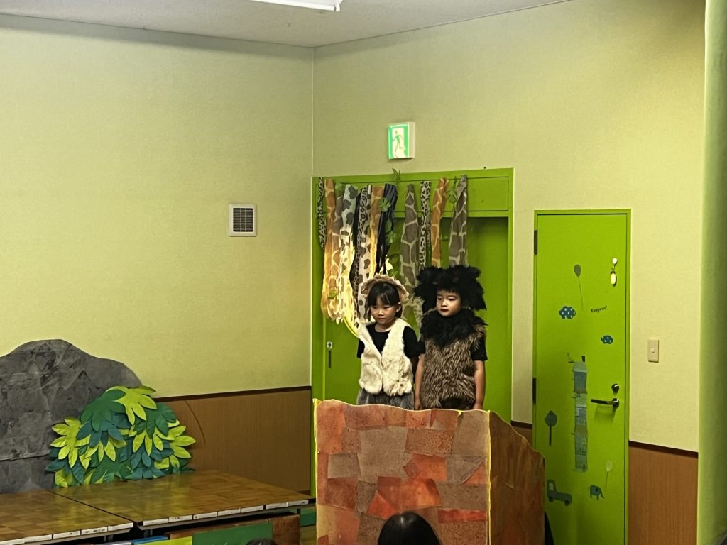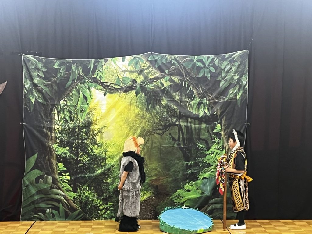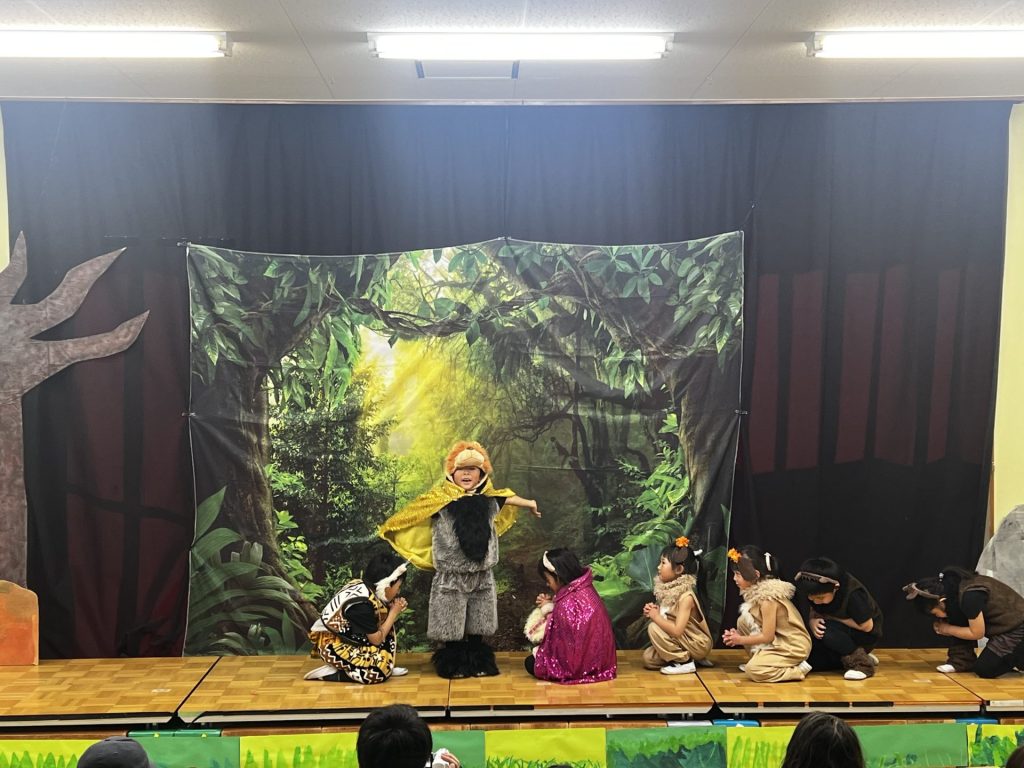 子ども達はそれぞれなりたい役を選び、王者の風格を表すポーズや、可愛いダンス、ストーリーを繋げるナレーター、一つの動きを丁寧に練習してきました。勇ましい歌声とダンス、そして仲間を思いやる優しい心、すべてがキラキラと輝く瞳からあふれだし、プライドランドの世界を賑やかに彩ります。