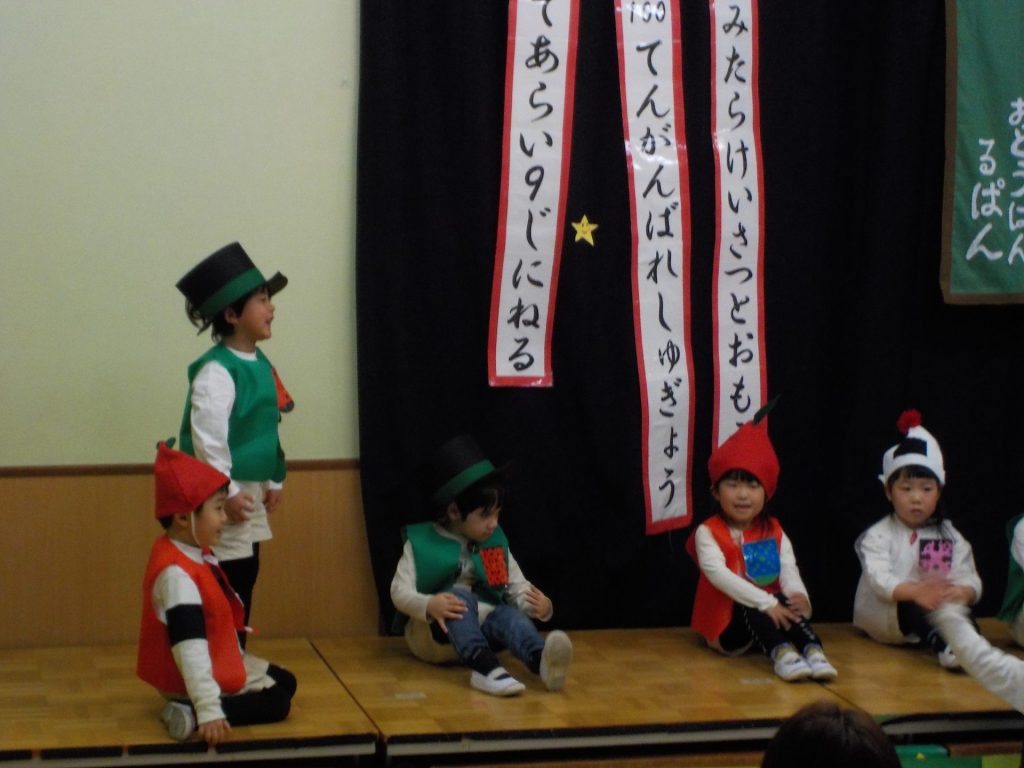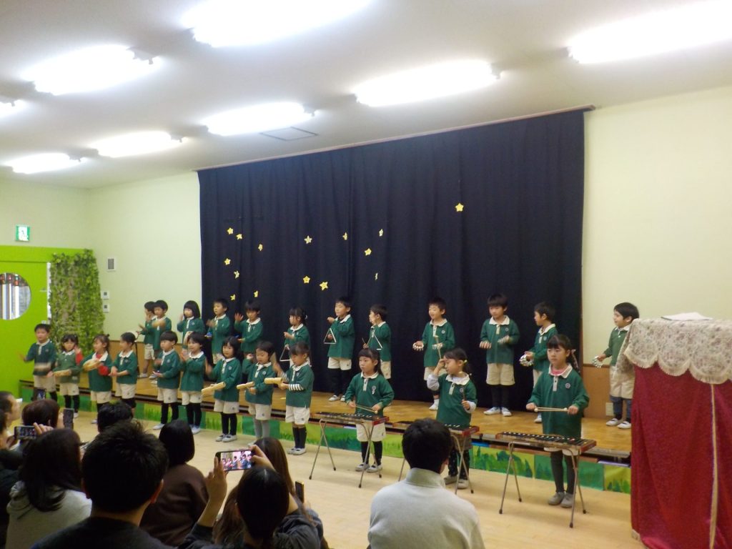 ひかりクラス(4歳児)歌「うさぎのはらのクリスマス」合奏「アルプス一万尺」 劇遊び「どろぼうがっこう」