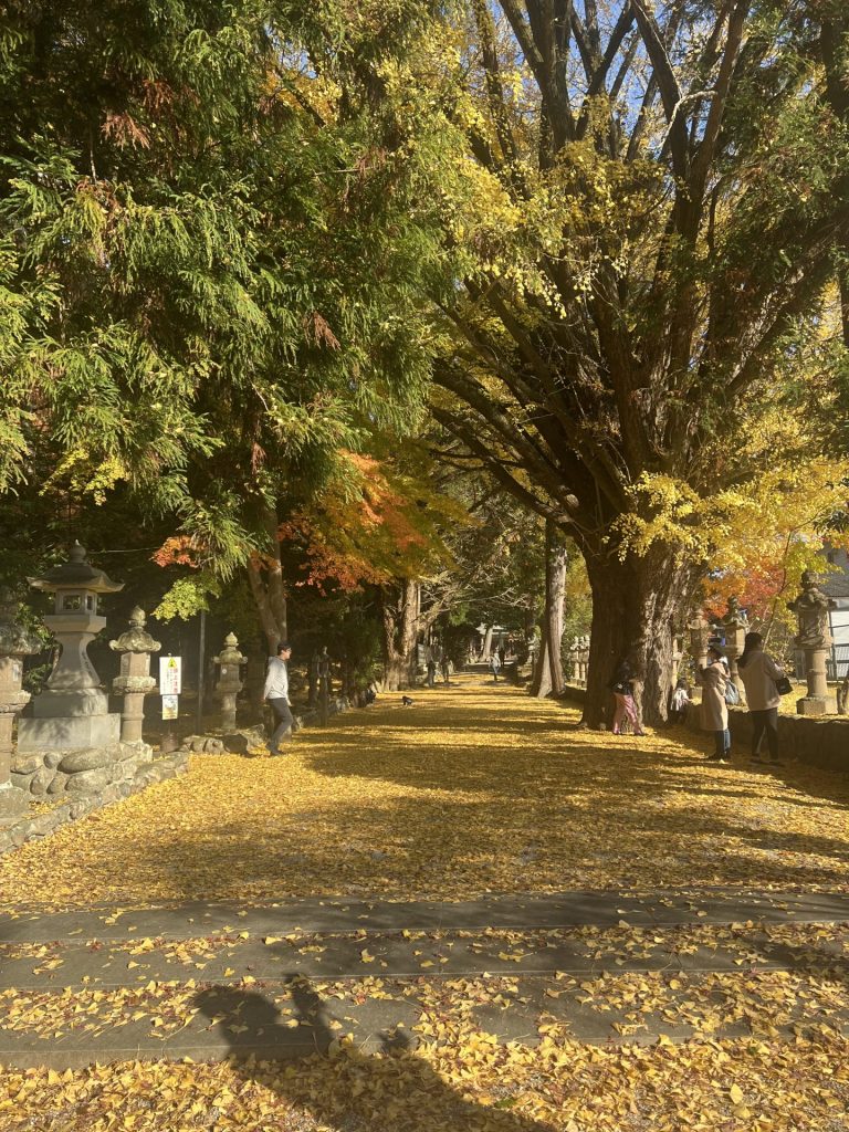 みんなで一礼して、心をこめて鳥居をくぐります。静かな空気に包まれ、少しだけ背筋がピンと伸びるような瞬間でした。