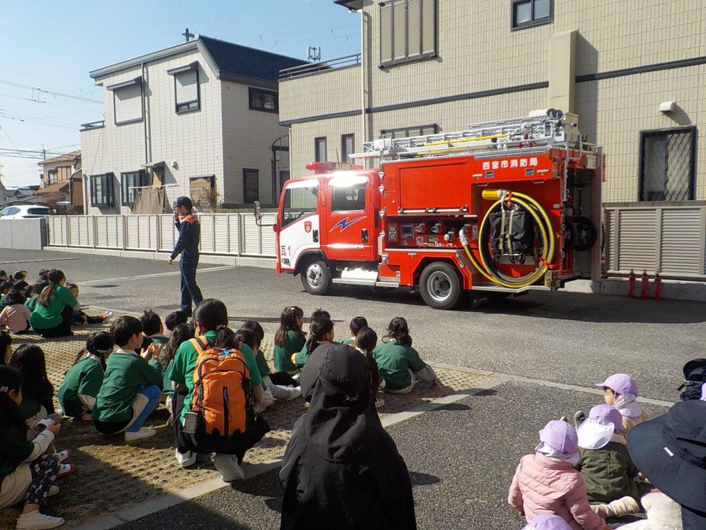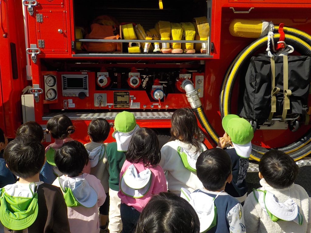消防士の方から、火事の時に大切なことについてわかりやすくお話をしていただいたり、消防車を見せていただきました。