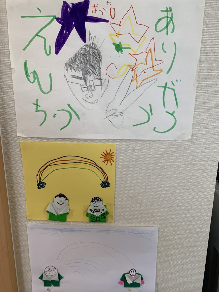 最後に載せた写真は昨年度末、年長児からもらった似顔絵です。とても似ています。似顔絵には「ありがとう」と言葉が添えてありました。素敵な言葉です。