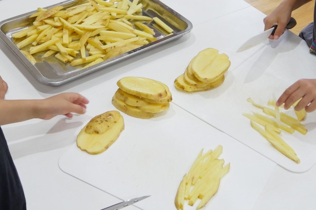 いちばんおいしい状態で食べてもらいたいと、子どもたちは張り切って各クラスへポテトを運んでいました。