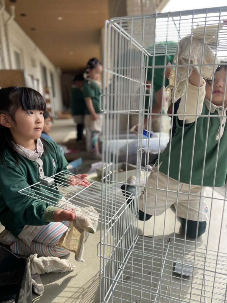 でも、今の年中も年少にうさぎの世話を教えています。