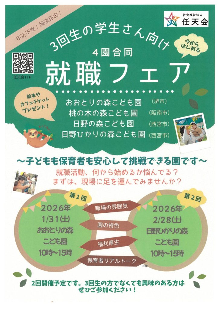 2026/01/10 リクルート 1月31日 就職フェア開催!!4園合同!!!