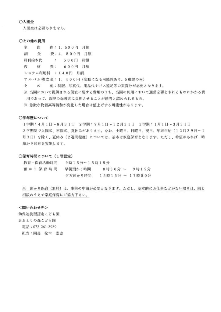 2020/12/17 入園について おおとりの森のこども園 Q&A(入園にあたっての質問に...