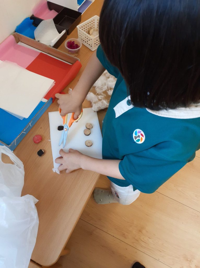 創る、描く、切る、着る、装飾する、考える、感じる、協同する、捕まえるとすべての行動の中に自信を持ち、根拠を持って行動したりします。